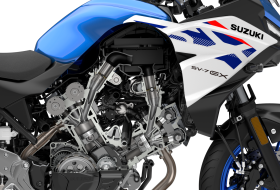 Sercem nowego modelu jest silnik V-twin o pojemności 645 cm³ i kącie rozwarcia cylindrów 90°, znany z płynnego, a zarazem dynamicznego oddawania mocy, odpowiedniej charakterystyki oraz legendarnej niezawodności. Suzuki dopracowało jego konstrukcję, czego dowodem jest ponad pół miliona sprzedanych motocykli i ich produkcja od ponad dwóch dekad. W nowym SV-7GX jednostka napędowa została udoskonalona. Silnik otrzymał m.in. elektroniczne sterowanie przepustnicami (ride-by-wire), trzy tryby jazdy, system kontroli trakcji oraz dwukierunkowy quickshifter, co przekłada się na osiągi oraz wygodę prowadzenia zarówno w ruchu miejskim, jak i na krętych, górskich drogach. Suzuki, które dziś zaprezentowano w Mediolanie, przetestowano w tunelu aerodynamicznym - nowy model otrzymał m.in. opływowy zestaw owiewek, szybę regulowaną w 3 pozycjach oraz (dostępne w standardzie) osłony dłoni, co zwiększa komfort jazdy w różnych warunkach pogodowych.